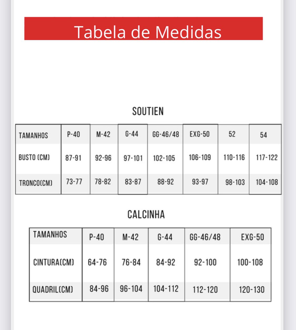 | tamanho | 52, 54, EXG – 50, G – 44, GG – 46/48 |